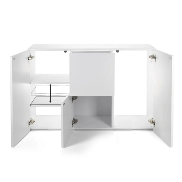 O móvel Aquael Premium Cabinet fecha com um “click”, reduzindo qualquer ruído desnecessário. As dobradiças permitem abrir as portas a 165 graus, mais que o standard neste tipo de móveis. Isto torna o acesso ao móvel muito mais simples e confortável.