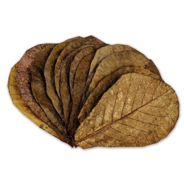 Conhecidas pelas suas propriedades anti-fúngicas e anti-bacterianas, as folhas de Terminalia catappa enriquecem a água com ácidos húmicos e flúvicos que replicam as condições de ‘águas negras’ próprias dos biótopos amazónicos e asiáticos. As substâncias húmicas contidas nas folhas e na casca da amendoeira têm um efeito extremamente positivo na regulação dos iões e do pH, protegendo a mucosa dos peixes e facilitando a sua introdução no aquário. A médio prazo são importantes na prevenção de doenças e servem de alimento a invertebrados. Vendido em embalagem de 10 folhas com aproximadamente 15cm a 20cm de tamanho. Devemos usar uma folha para 40 litros de água do aquário.