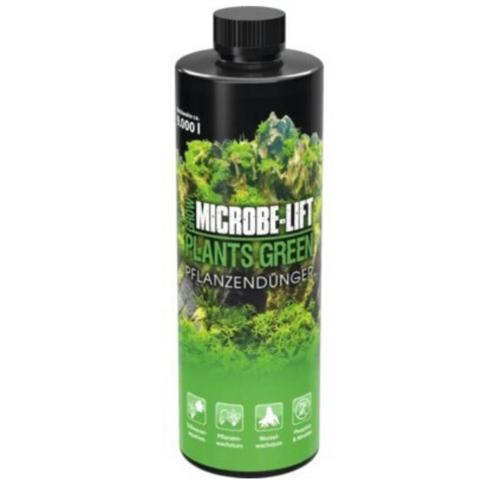 MICROBE-LIFT PLANTS GREEN 473ml fertilizante completo para um crescimento saudável de todas as espécies de plantas aquáticas. Contribui para o desenvolvimento do sistema radicular desde o início da sua aplicação. Livre de nitratos e fosfato, a sua utilização não contribui para o aparecimento de algas indesejadas. Totalmente seguro para todas as espécies de peixes e invertebrados. Embalagem de 473ml trata 9.000 litros de água.