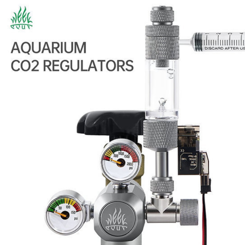 WEEK AQUA DUPLO MANÓMETRO DE CO2 + VÁLVULA SOLENÓIDE + CONTA-BOLHAS com válvula de agulha para ajuste fino que permite um controle preciso da injecção de CO2. Duplo manómetro de leitura simples permite uma leitura rápida da pressão da garrafa assim como da pressão da saída, em conjunto com válvula solenóide e um conta-bolhas para um controle à medida das exigências do seu aquário. Compatível com garrafas de CO2 padrão (w21.8 / din 477 para CO2).